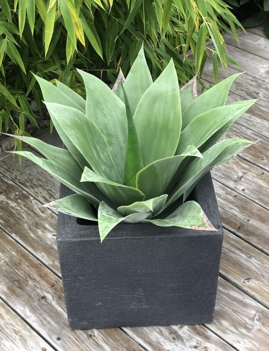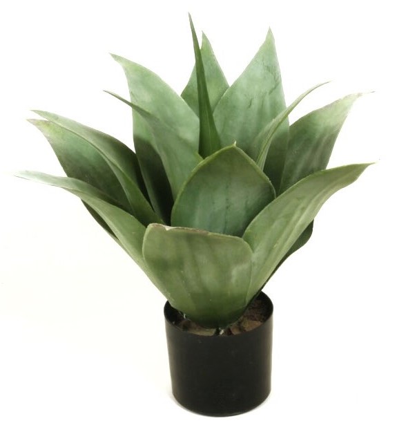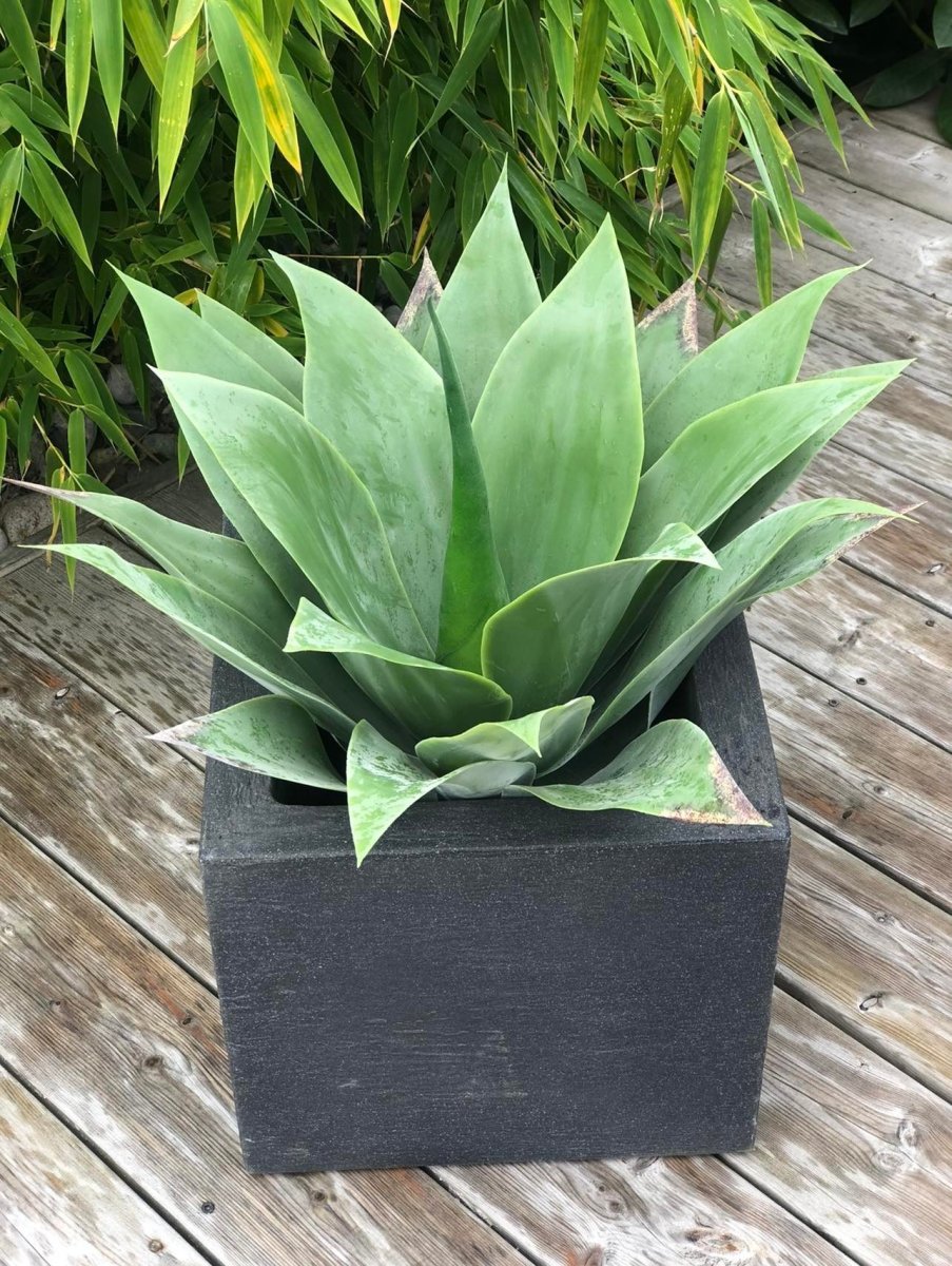 En konstgjord agave eller succulent av hög kvalitet. Mycket välgjord och naturtrogen, med UV-beständiga blad. Detta innebär att bladen kan stå emot solens UV-strålning under en längre tid och därmed behålla sin färg bättre än andra produkter. De tål även vatten. Höjd 45 cm inklusive krukan.