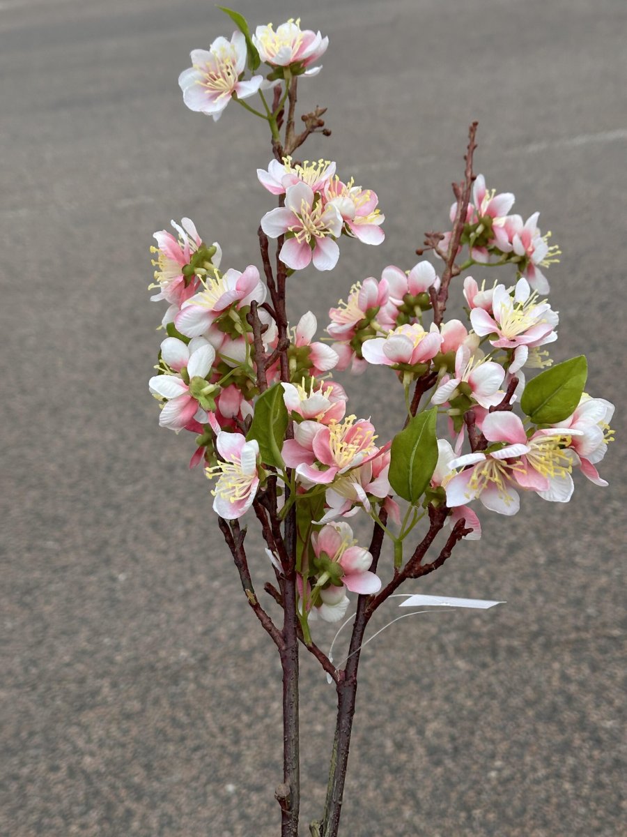 En riktigt fin och välgjord blommig körsbärskvist. Högklassig Creme och rosa körsbärskvist. Denna vackra kvist är både snyggt både ensam och tillsammans och mixade med andra vackra snittblommor. Snyggt med ett stort fång i större vas. På bordet på hylla eller i butik och restaurang. Webflower har stort sortiment av snittblommor och andra kvistar. Total höjd 60 cm