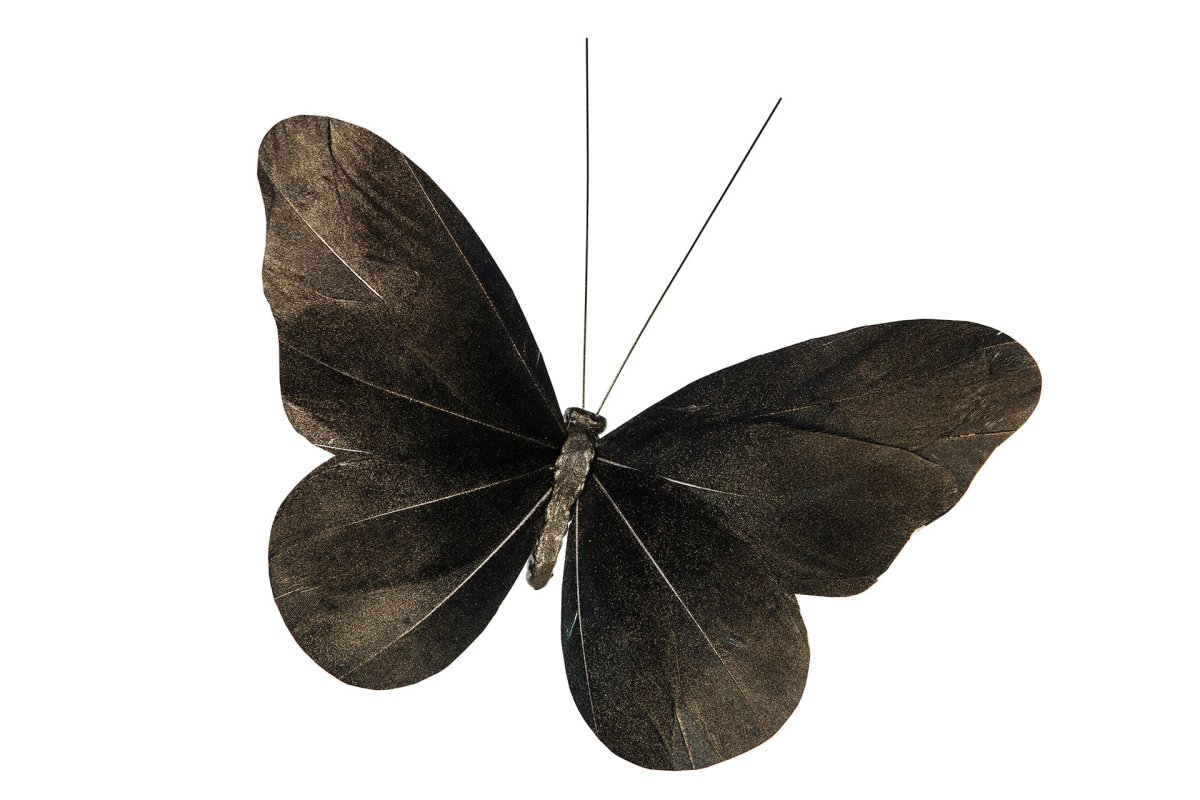 Vacker större guldbrun mixad fjäril. Vacker som dekoration. Dekorativ fjäril i stick. Ge dina träd, dukningar blombuketter, kransar, ostbrickan, bakverk eller tårtan karaktär. En perfekt detalj till festen eller som en inredningsdetalj. Lätt att hantera och sätta fast då fjärilen har ett stick som går att böja fast fjärilen på önskad plats.. Storlek: 20 cm
