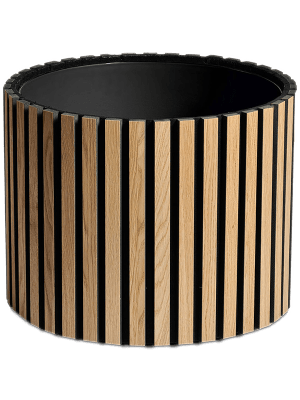 Plantinum-krukan från Acoustic-kollektionen är designad med en räfflad struktur och en naturlig finish. Denna kruka är speciellt avsedd för inomhusmiljöer och levereras som standard i rustik naturlig ek. På begäran finns även versioner i valnöt och rustik rökt ek tillgängliga. Acoustic-kollektionen har ljudabsorberande paneler som bidrar till akustikförbättrande egenskaper i utrymmet. Användningen av återvunnet material gör denna kruka till ett hållbart val. Tack vare sina akustikförbättrande egenskaper och användningen av högkvalitativa material är Plantinum-krukan lämplig för olika inomhusmiljöer där både hållbarhet och ljudabsorption önskas. inomhusbruk. Storlek: H 39×55 cm