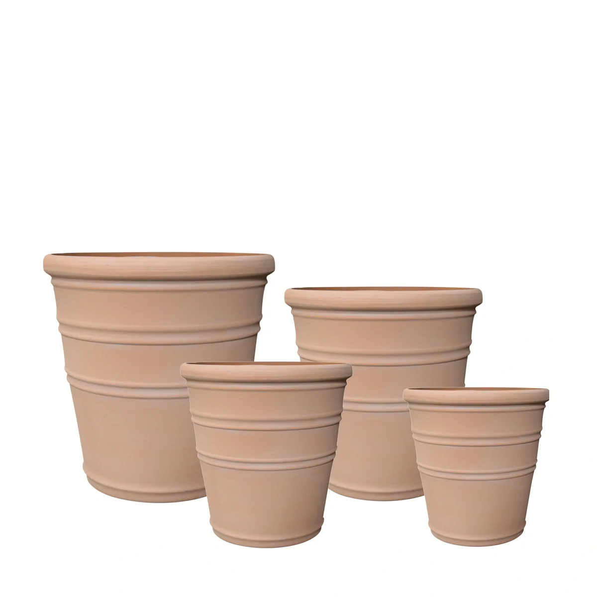 Fyra krukor som ett eget set med 80% återvunnen plast/stenpulver/fibermix * Miljövänligt * Pålitligt material * Lätt vikt * Frostbeständig och uv skyddad * För inom- och utomhusbruk. Storlek:L55x53 46×46 40×41. Innerdiameter på krukorna är Ø53, 43, 37, 32. Material: Plast.