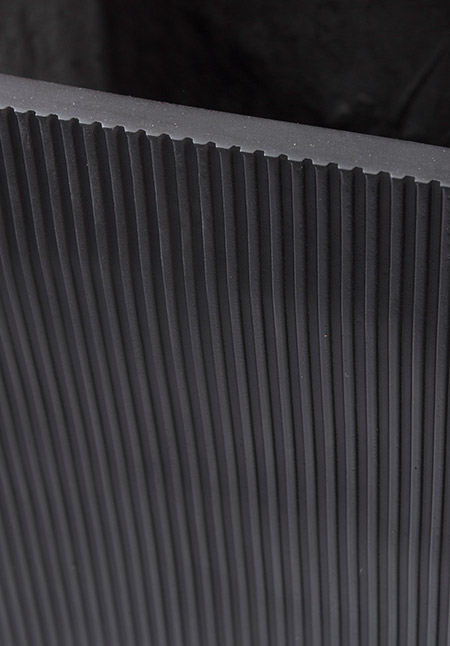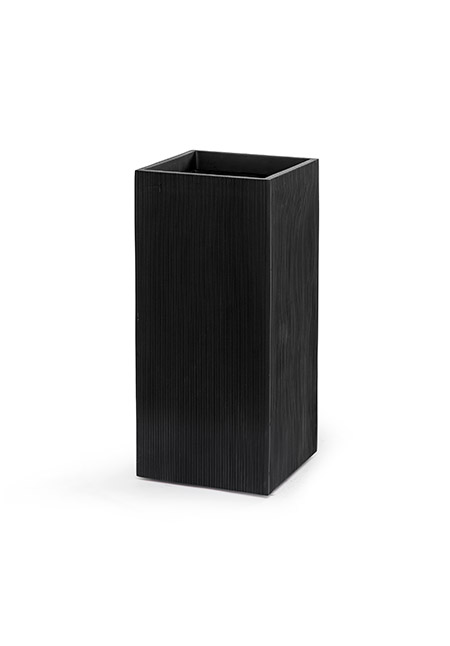Snygg lite extra svart ribbad kruka. Denna serie krukor har en strikt kubistisk design. Matt, tandstrukturerad polystone. Lika vackra inne som ute. Snyggt att placera större växter i eller till mindre växter för att få växten att komma upp på höjden. Mått (BxDxH): 32 x 32 x 70 cm Vikt: 9 kg. Material / ytfinish: Fiberstone/Matt/Ribbad